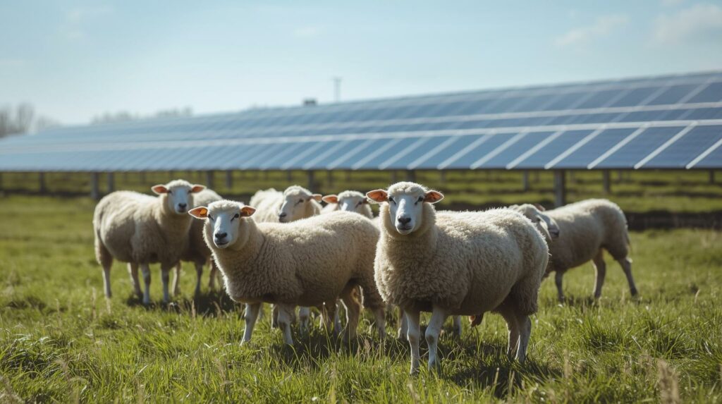 - Ovins : Les moutons, grâce à leur petite taille, s’accommodent parfaitement des panneaux installés à 1-1,5 mètre de hauteur. Une étude INRAE de 2024 a confirmé une réduction de 25 % des coûts de santé animale grâce à l’ombre et à la protection contre les intempéries. Les brebis assurent même l’entretien naturel de l’herbe sous les panneaux.